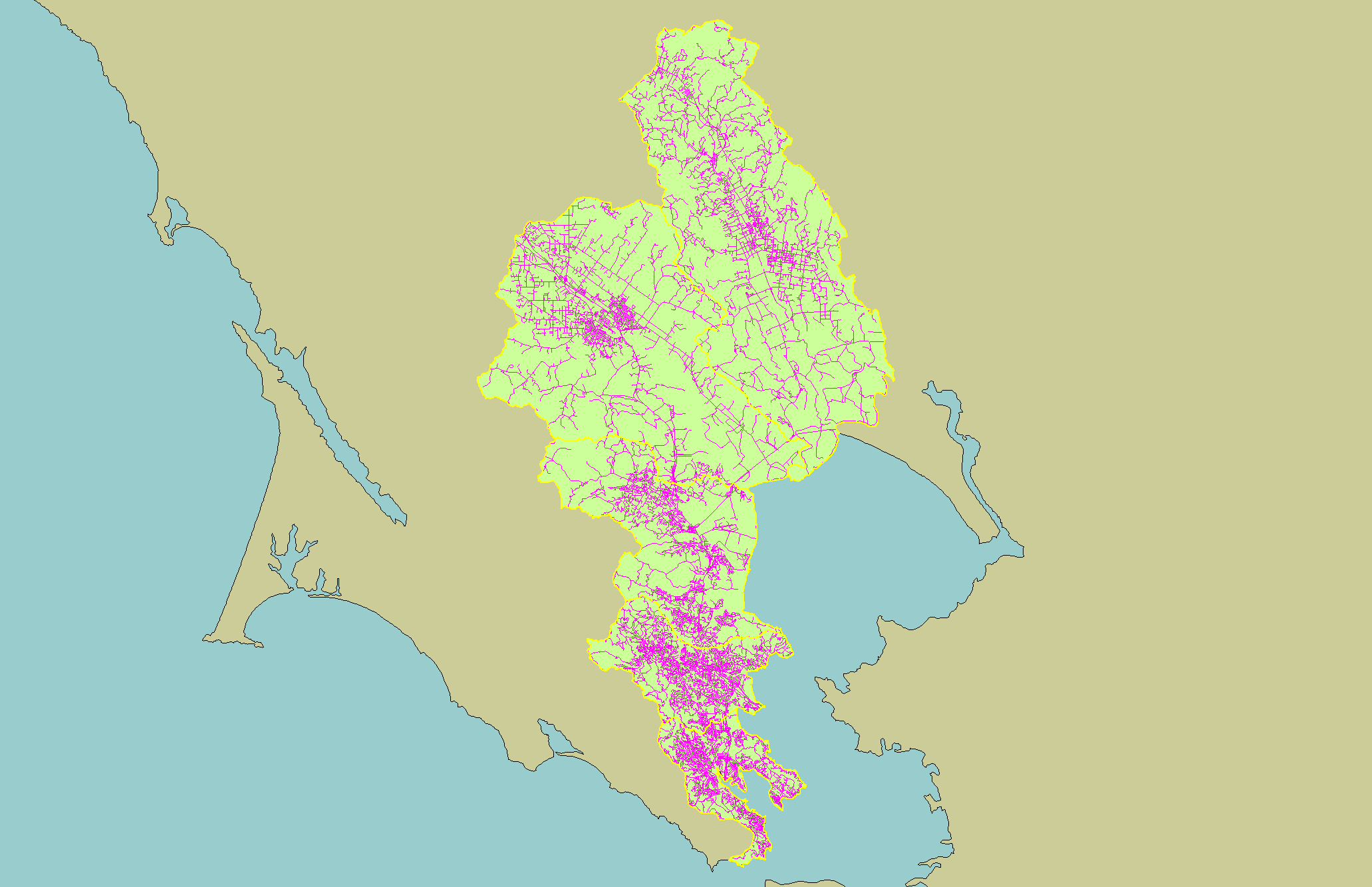 This is a map of the roads in the KRIS East Marin-Sonoma Project. The actual number of roads is under-represented in this map, especially in urban areas, because the roads layer is based on 1:100,000 scale topographic maps that may be over twenty years old.